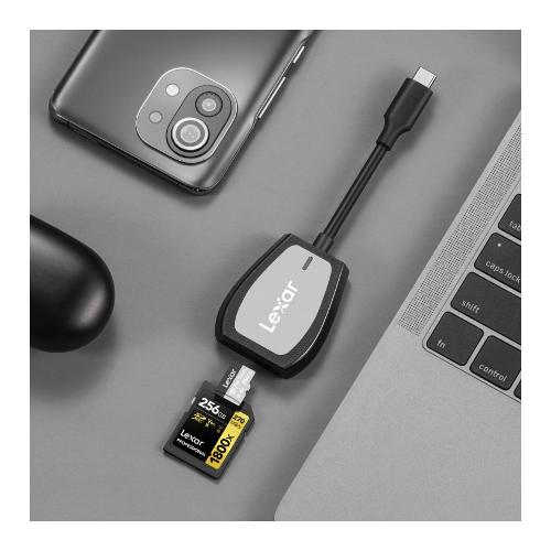Per velocizzare il flusso di lavoro, il lettore Lexar Professional USB-C a doppio slot è compatibile con schede SD e microSD UHS-II e offre ai professionisti creativi velocità di trasferimento fino a 312 MB/s in lettura.