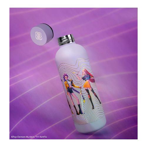 Il morbido lilla incontra la quieta forza di Honmoon in questa Bottiglia d'acqua termica di KPop Demon Hunters. Le onde dorate di Honmoon scorrono sulla bottiglia come un’aura protettiva, e l’illustrazione del personaggio e la scritta metallica HUNTR/X le conferiscono un look elegante e da collezione.