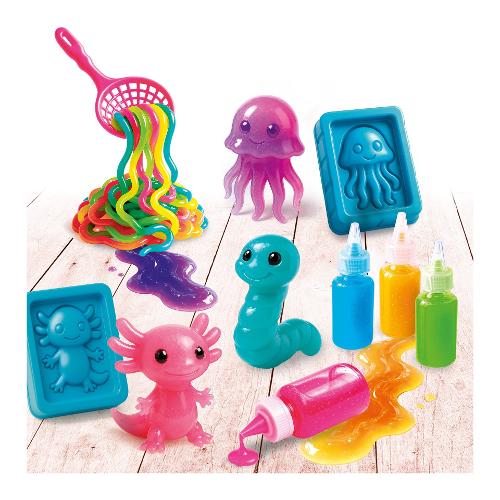 Un kit per realizzare tante creature marine in versione squishy 3D! Fai da te, facili e divertenti: basta versare la polvere magica nell’acqua, riempire gli stampi con il magico slime e immergerli in acuqa… ed ecco che in pochi minuti i tuoi water squish saranno pronti!