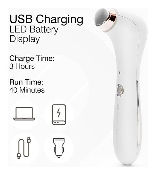 Questo dispositivo di bellezza leggero ed elegante offre una combinazione di calore, crioterapia, massaggio vibratorio e tecnologia a microcorrente galvanica per migliorare la circolazione sanguigna, contrastare il gonfiore e ridurre la tensione intorno agli occhi e alla fronte. In modalità riscaldamento, la testina pulsa a 200 Hz al secondo per rilassare i muscoli facciali e favorire l'apporto di ossigeno e nutrienti. Offre fino a 40 minuti di utilizzo con una singola carica, ideale per l'uso quotidiano. Cavo di ricarica USB in dotazione.