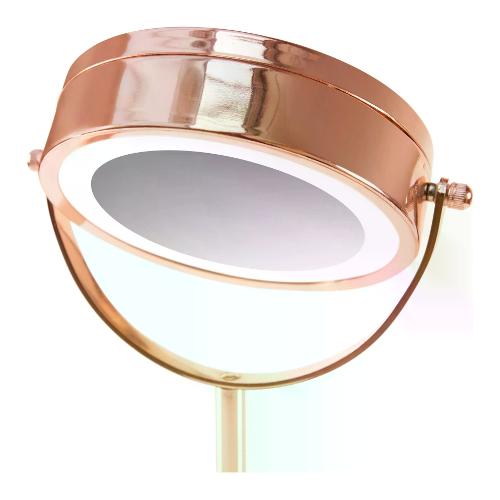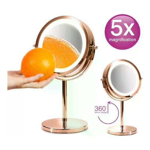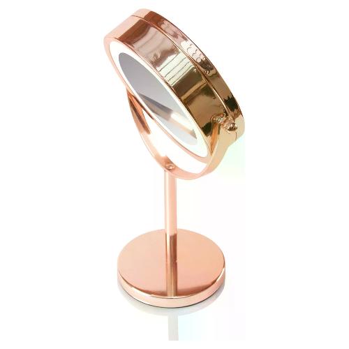 Uno specchio cosmetico a LED bifacciale color oro rosa per quei trattamenti di bellezza che richiedono un po' più di precisione e illuminazione. Lo specchio ingranditore Rose Gold offre un ingrandimento 1x (normale) e 5x con una luce LED soffusa, ideale per l'applicazione del trucco e per quei trattamenti di bellezza che richiedono un po' di precisione in più. Il design girevole a 360° consente una facile regolazione dello specchio per il trucco.
