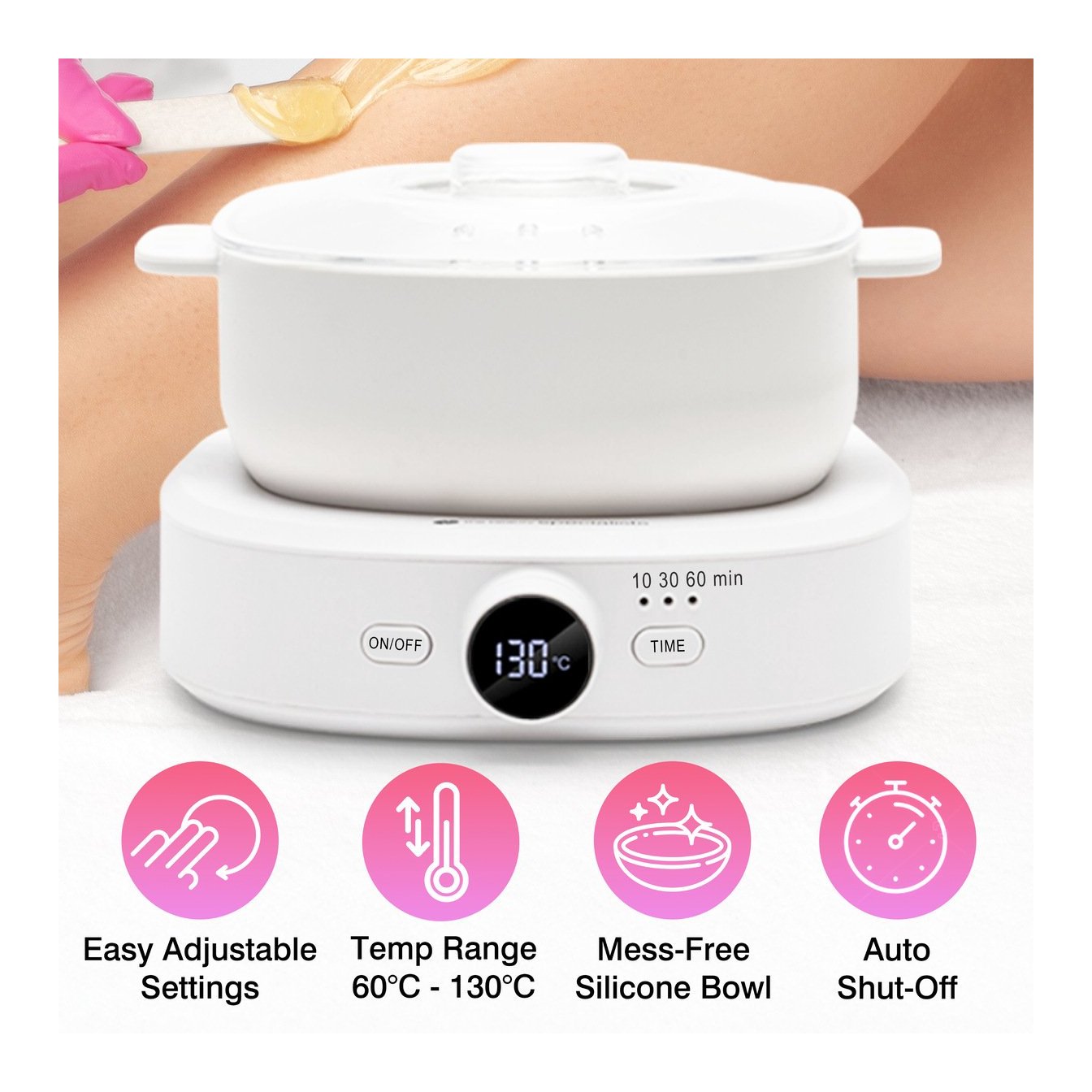 Il Rio WXHR Go Smooth scioglie rapidamente la cera, sia dura che morbida, alla temperatura desiderata per una depilazione perfetta e professionale. Grazie al display a LED e ai comandi touchscreen, è possibile selezionare il tempo e impostare con precisione la temperatura di riscaldamento.